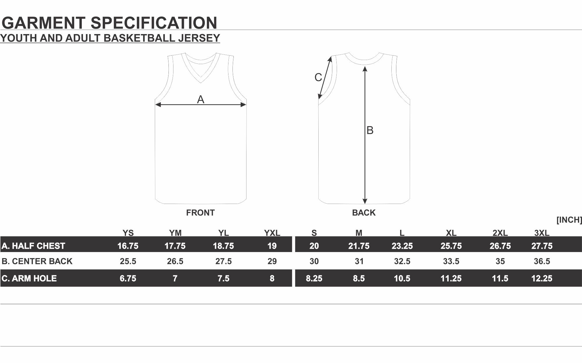 BASKETBALL JERSEY SIZE CHART