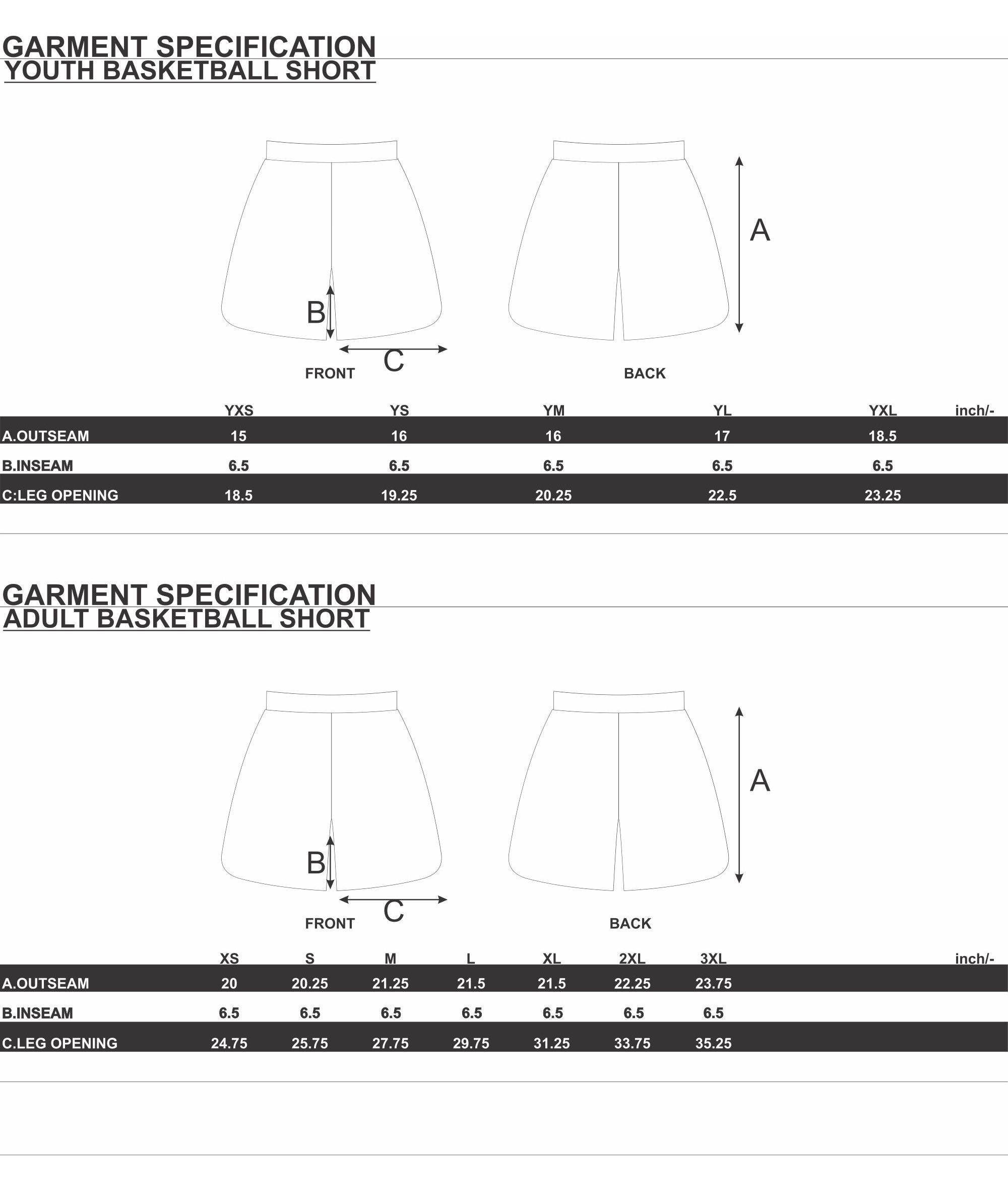 BASKETBALL SHORT SIZE CHART