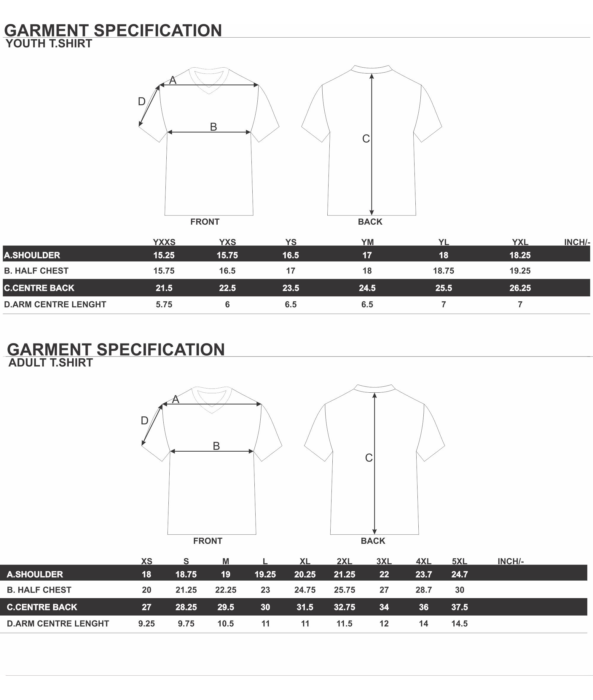 YOUTH T SHIRT SIZE CHART