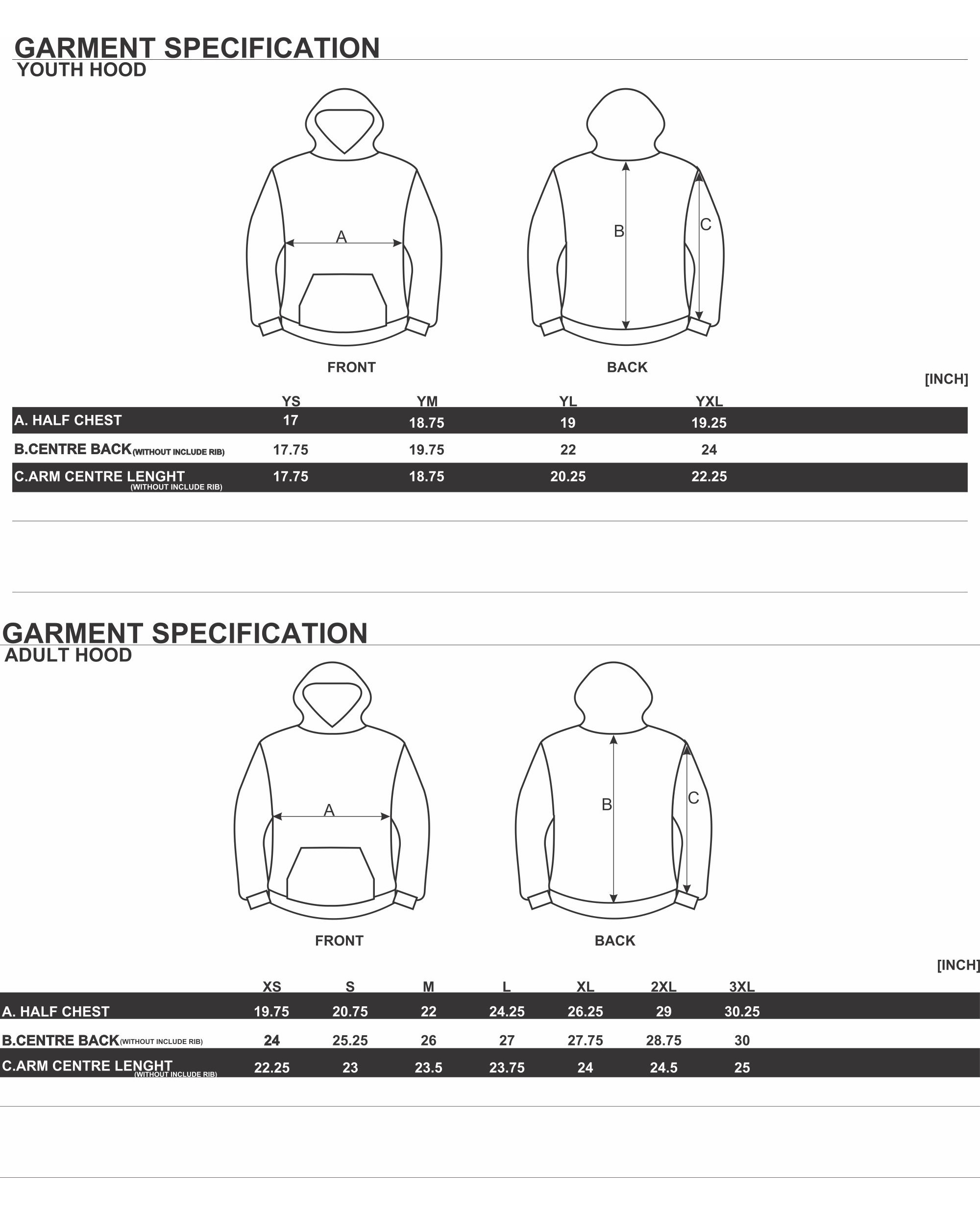 YOUTH HOOD SIZE CHART